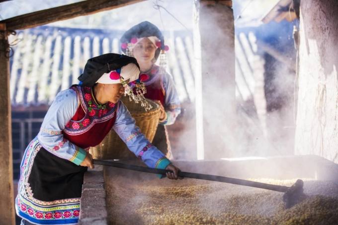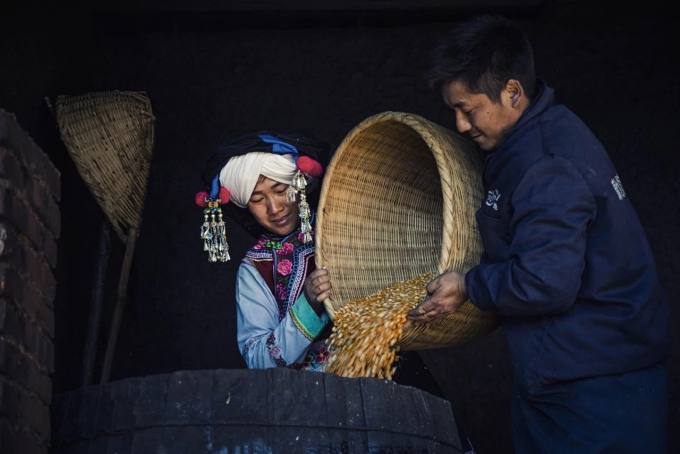 格登村之行,只为一坛水酒。 出了巍山古城一路向西,穿山过水,便到了牛街乡牛街村委会格登村。正值阳春三月,百花盛开,万木吐绿,生机勃勃,人未进村,风儿便捎来撩人的酒香,好一幅“水村山郭酒旗风”的诗景。 我不知道,到底是村因酒而得名,还是酒因村而得名,反正格登如今既是村名,也是酒名。如今的格登酒已有100多年的酿造历史,酒永远是这个古老村庄流淌着的血液,融入民风、民俗。 对于格登酒的记忆,应该是从我上中学时开始的。那时父亲在供销社工作,在鼠街开着门市部,销售各种农具和百货日用品,其中就有格登酒。那时盛酒的器皿是一个大土缸,量酒用具有1斤、半斤、1两酒提。那时谁家来客,打发个小孩,小手握着玻璃瓶来打酒,小孩手握酒壶,走路小心翼翼地,谨谨慎慎怕碰洒了酒或者摔了酒壶。要是遇上街天,也有赶集的汉子喊:“来一斤格登酒。”然后递上一个不知从哪里讨来的装过医用葡萄糖的瓶子,打了酒直接就蹲在街头的油粉摊上喝,每天集市散去,总有几个醉鬼睡在街场的一角或回家的路边。 父亲不在的时候,卖酒的任务就交给了我。有时同学找我玩,几个人偶尔也会偷偷摸摸咪上几小口。如今想来,我现在的酒量与酒瘾,或许都与此有关。 岁月悠悠,时光匆匆。如今,时间已过去了30多年,曾经懵懂无知的少年郞,也已过不惑之年。而格登酒的清香依旧,格登村的名声依旧。在这个巴掌大的彝族村庄里,长年酿酒的传统作坊就有13家,而季节性酿酒的人家更多。 陈家荣的酒坊被一棵棵高大的核桃树包围着。走进酒坊,就见到一个高大的木制大酒甑,陈家荣和妻子杨文艳正将酒甑里蒸煮过的包谷舀出,用篾箩运到旁边的木槽里晾,热气腾腾中弥漫着浓郁的香气,让人感觉“酒不醉人人自醉”。记得小时候外公家也酿酒,在那物资匮乏的年代,因为饥饿,我们就经常偷刚出甑的包谷粒吃,而那时的酒坊也很小,一甑只产几十斤酒。多年前我来格登村采访另一家酿酒作坊时,主人茶绍云也给我讲过他绰号“矮老倌”的爷爷当年每天背5公斤格登酒去牛街街场上卖,且规定每个人只能买他的二两五格登酒,卖完即走的故事,究其原因也是当时的作坊规模太小的缘故。 “将蒸煮后的包谷出甑晾需要约24个小时。”随行的牛街村党总支原书记陈家国说。因为时间关系,我们今天看到的其实只是格登酒酿造的一个程序而已。 酿酒的第一步,就是选籽。“选籽就是将原料中发霉变质的包谷籽删选掉。”陈家国说。选好的包谷要放在清水里进行清洗,并用篾制漏勺将漂在上面的杂质捞除。然后倒进酒甑中蒸煮。“蒸煮是酿酒过程中的重要环节,这个煮的过程大概要五六个小时。” 陈家国说,煮好的包谷还要再用蒸的方法来脱水、脱涩。 蒸煮后出甑晾后的包谷,拌入适量的酒药放到木槽里发酵48小时,再装到陶缸里进行糖化处理。包谷入缸后,缸中会发出咕噜咕噜或叽叽滋滋的响声,酿酒师傅就是通过听这些响声来判断它们的变化情况。糖化的过程在夏天一般30多天,在冬天一般50天左右,这个过程决定着酒的品质。 糖化后的包谷还要再次倒入木甑中,在铁锅里加够甑脚水,在土灶里烧上大火,待甑盖上气,清清的酒液就渐渐顺着竹制的导管流到酒缸里。“一斤包谷可以酿出0.5斤左右的成品酒。” 陈家国说,最先流出的酒液酒精度在70至80度左右,越往后酒精度越低,当酒缸中的酒混合后酒精度达50度左右时,整甑酒的蒸煮过程也就结束了。 好水出好酒,格登村的酒之所以好,用的全是村里的古井水。当年采访茶绍云,我就看到了村口的一口古井,古井水质清冽,水面上盖了间拱形的小房子。前年冬天因工作需要想补拍个酿酒的图片,当我和茶绍云电话联系时,他告诉我因为干旱,村里井水的出水量减少了,他家的作坊已停产几个月。宁愿作坊停产,也不用自来水酿酒,这就是格登酒之所以品质好口感好的原因。 陈家荣的小院里,栽满了各种鲜花。好客的主人,早摆好了几坛老酒,年限最长的说是已藏了6年之久。我打开其中一坛,倒入酒杯轻轻咪了一口,一股清香从唇边直抵舌尖……路途中的劳累和疲惫瞬间不知所踪,感觉整个小院都弥漫着酒香。 酒香弥漫的村庄,滋润着岁月,酣醉着格登人的生活。“等到石榴花开的季节,再来赏花品酒。”酒至半酣,陈家国和我相约。 我说:“一定。”