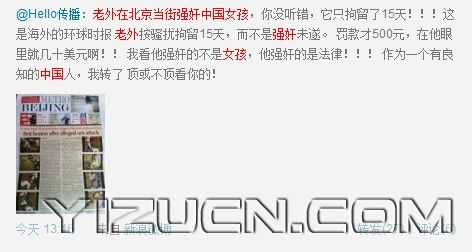 老外在京当街强奸中国女孩 仅拘留15天罚款500元 太可恶了 attach_img