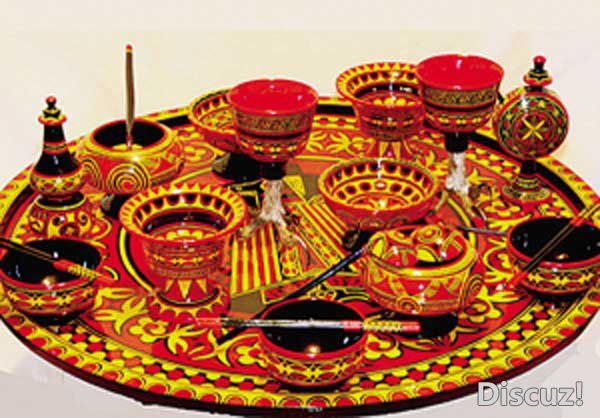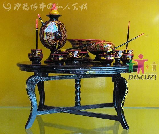 彝族漆器艺术是彝族民间艺人在木、竹、皮革制作成的餐具、酒具、马具、兵器和住宅建筑物图案纹饰上普遍使用 ...