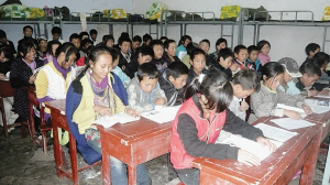 图为“爱心班”学生坐在教室里认认真真地学习。   秋风习习,寒流簌簌。近日,记者 ...